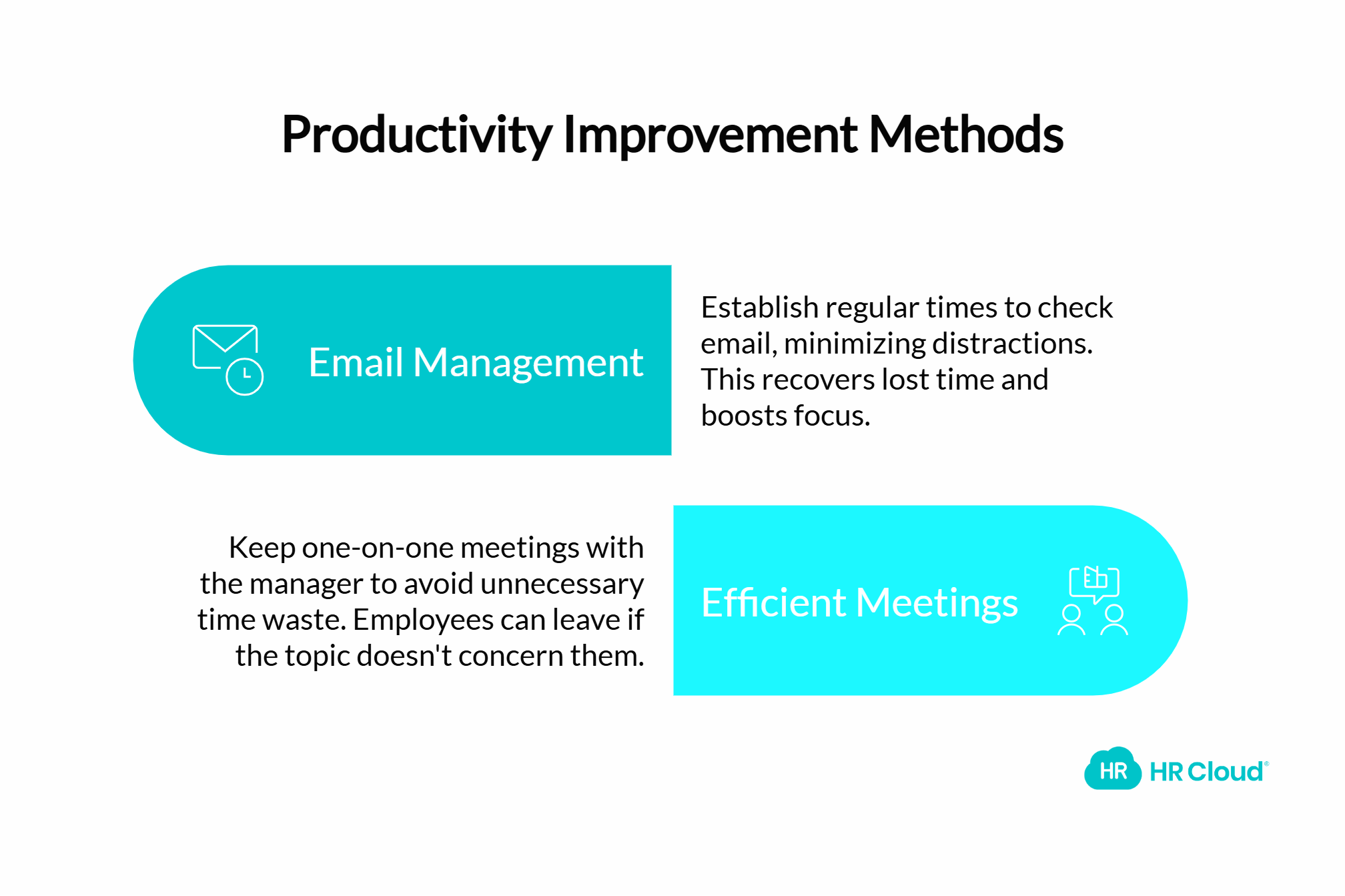 The same goes for meetings, sometimes a 30-minute sync ends up being more than an hour sync. The best way to avoid this is to keep one-on-one meetings with the manager. This way, employees to whom the topic does not concern can be free to go. Implementing a real-time performance feedback software can help streamline these processes and improve overall efficiency.