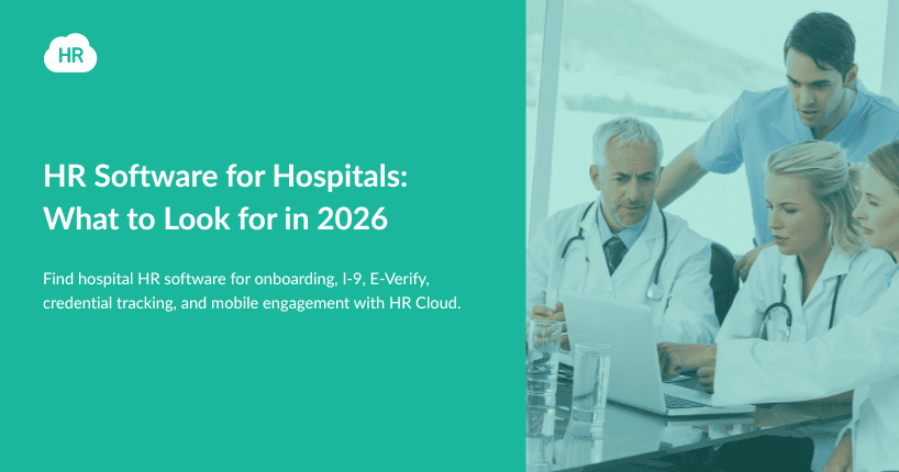 What's the difference between general HR software and healthcare-specific HR software? General HR software often lacks the specific workflows hospitals need: E-Verify integration embedded in onboarding, credential expiration tracking, multi-facility configuration, and mobile delivery designed for deskless workers. Healthcare-specific platforms — or general platforms with deep healthcare configuration — handle these requirements without requiring extensive customization. HR Cloud's healthcare industry page outlines how its modules are configured for clinical environments.