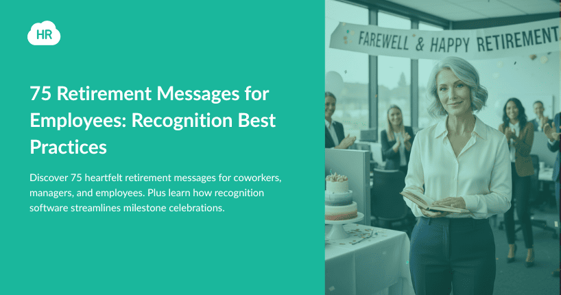 Retirement recognition represents a critical employee lifecycle milestone affecting 75 million Baby Boomers through 2030. Organizations with strong recognition programs achieve 31% lower turnover and 21% higher profitability according to SHRM and Gallup research. Modern platforms like Workmates by HR Cloud automate milestone celebrations through mobile-first applications integrating with major HRIS systems including ADP, UKG, Workday, and Paylocity. The platform enables peer-to-peer recognition, points-based rewards, and comprehensive analytics helping HR teams scale authentic appreciation across distributed workforces. Effective retirement messages combine genuine acknowledgment of contributions with specific impact examples and sincere future wishes—delivered through both traditional approaches and digital recognition technology that ensures consistent, meaningful appreciation throughout the entire employee journey.