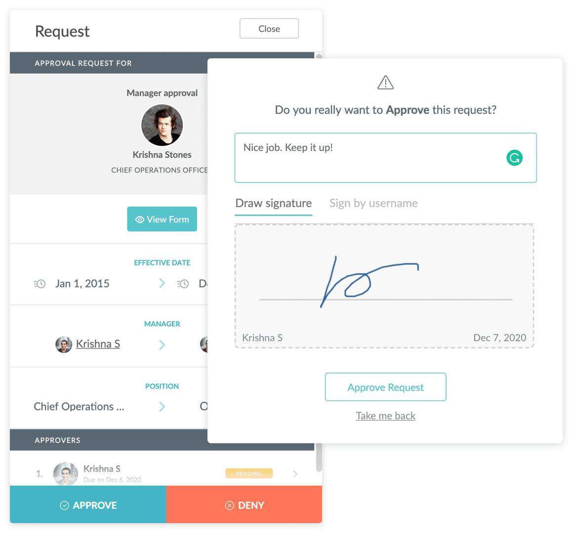 Book Your Free DemoKeep digital onboarding workflows running with e-Signatures capabilities. Enable new hires, managers, and HR teams to save time and improve compliance with fast, easy e-Signatures.