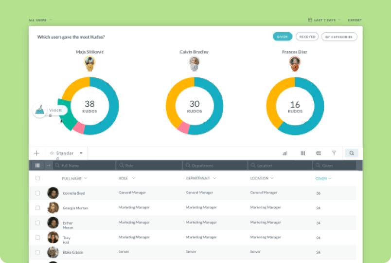 Get real-time insights into engagement trends, recognition activity, and survey results to enable data-informed decisions fast.