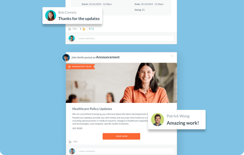 See everything that matters — company news, kudos, events, and updates — in one personalized feed that’s easy to browse and built just for you.