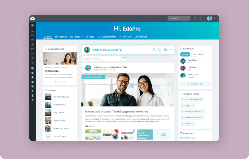 Everything you need to engage, inform, and inspire your growing teams. All from a single platform.