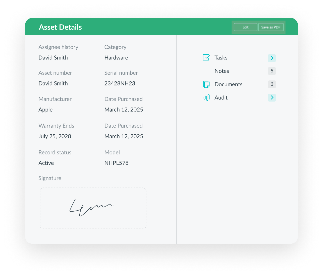 Centralized inventory with automated assignment, recovery workflows, and full lifecycle tracking tied to offboarding.